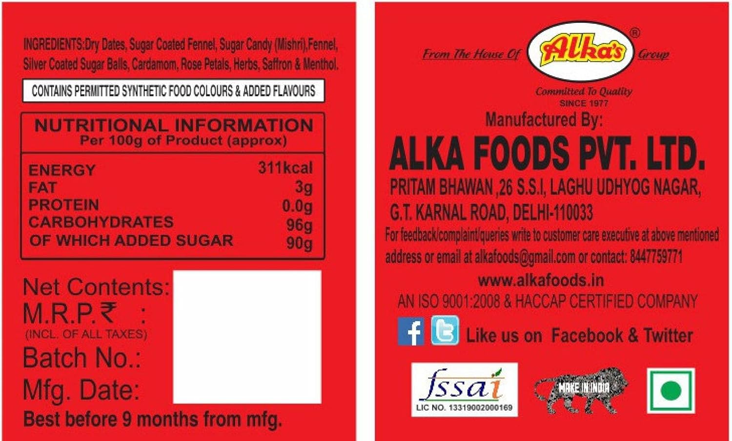 - FENNEL, SUGAR, MENTHOL, ADDED NATURAL & NATURE IDENTICAL FLAVOUR ( PAAN )